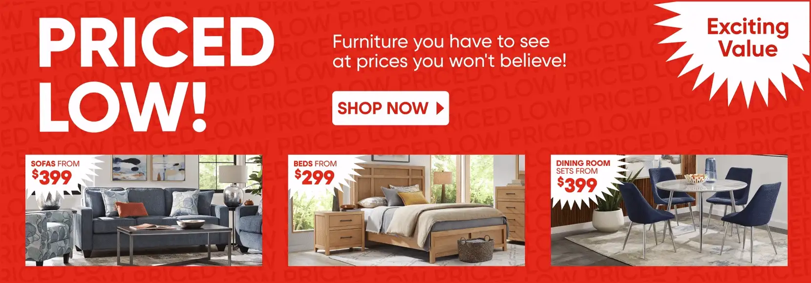 Within our main catalog, Rooms To Go offers everything you need to furnish a home from top to bottom. Choose from inviting living room sets including sofas, sectionals, loveseats, recliners, and coffee tables. Explore complete bedroom collections with beds, dressers, nightstands, and storage solutions for both main and guest rooms. Our dining room furniture includes everything from casual breakfast tables to elegant formal dining sets with chairs, benches, and servers. We also carry home office furniture such as desks, bookcases, and office chairs; stylish accents and home decor like lamps, rugs, and wall art; and a wide range of storage pieces and media centers to complete every space. From outfitting a new home or refreshing a single room, you'll find curated options to match your taste, budget, and lifestyle.