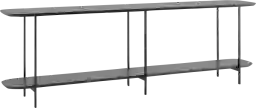 The Aardvark Walk black sofa table takes your living room style up a notch and impresses guests by adding visual interest to your space. With its two-tiered design and steel legs, it easily blends into a modern contemporary space and slides behind a sofa or sits in an entryway, making it both a stylish and functional addition. Add a tray for keys, a lamp, framed family photos up top, and your favorite coffee table books or decorative accents to make it your own. Customer assembly is required.