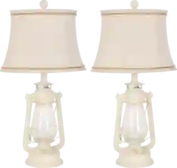 From the cottage to the cabin, this distressed Abanico Court white lantern pair of lamps are a great accent lamp for multiple decorating styles. Partial assembly may be required.