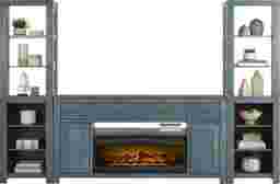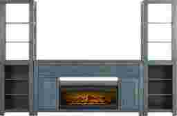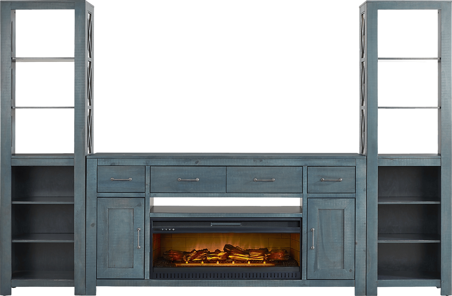 Abbey Springs Blue 4 Pc Wall Unit With 77 In. Console And Electric Log Fireplace