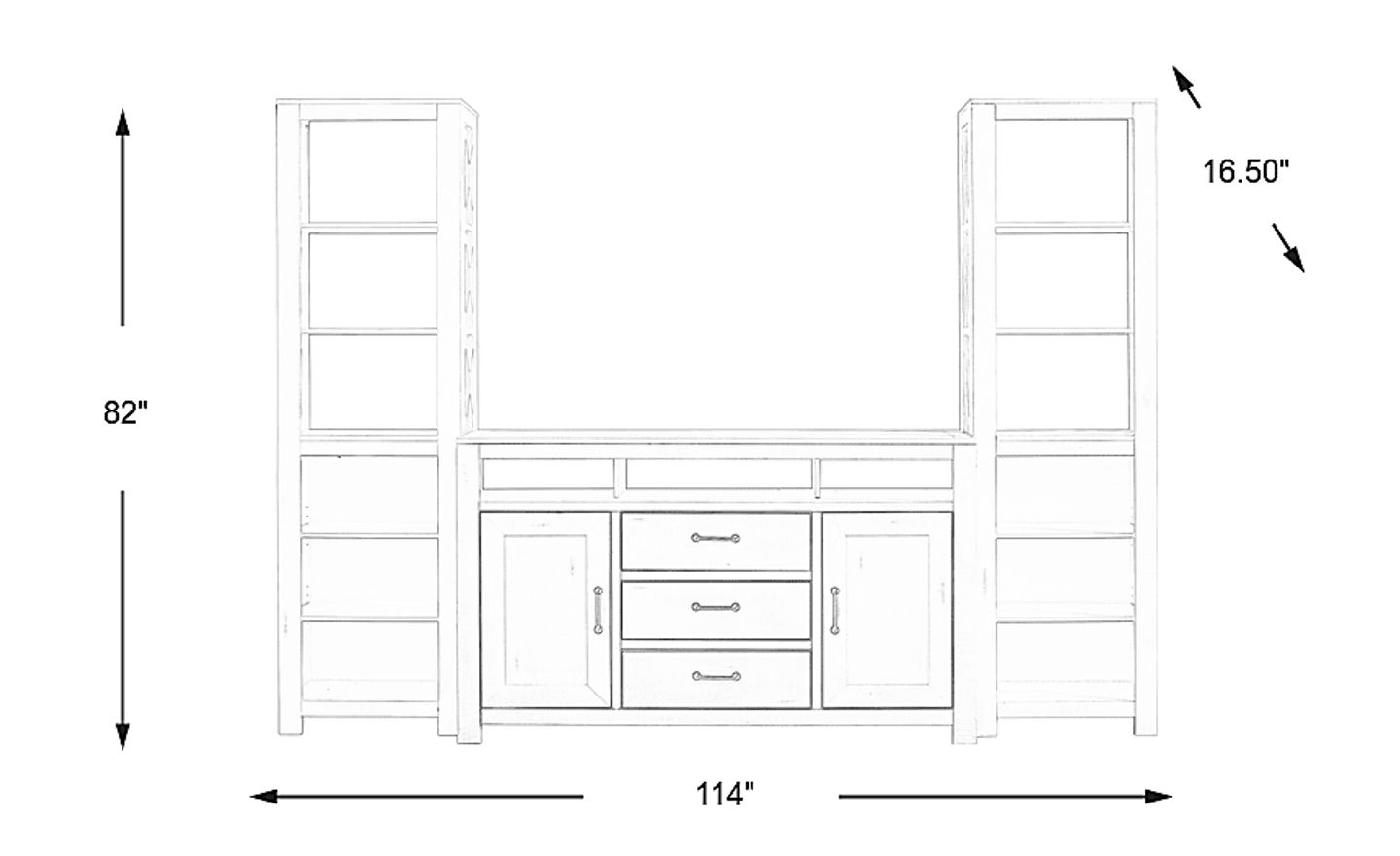 114"w x 16.50"d x 82"h
