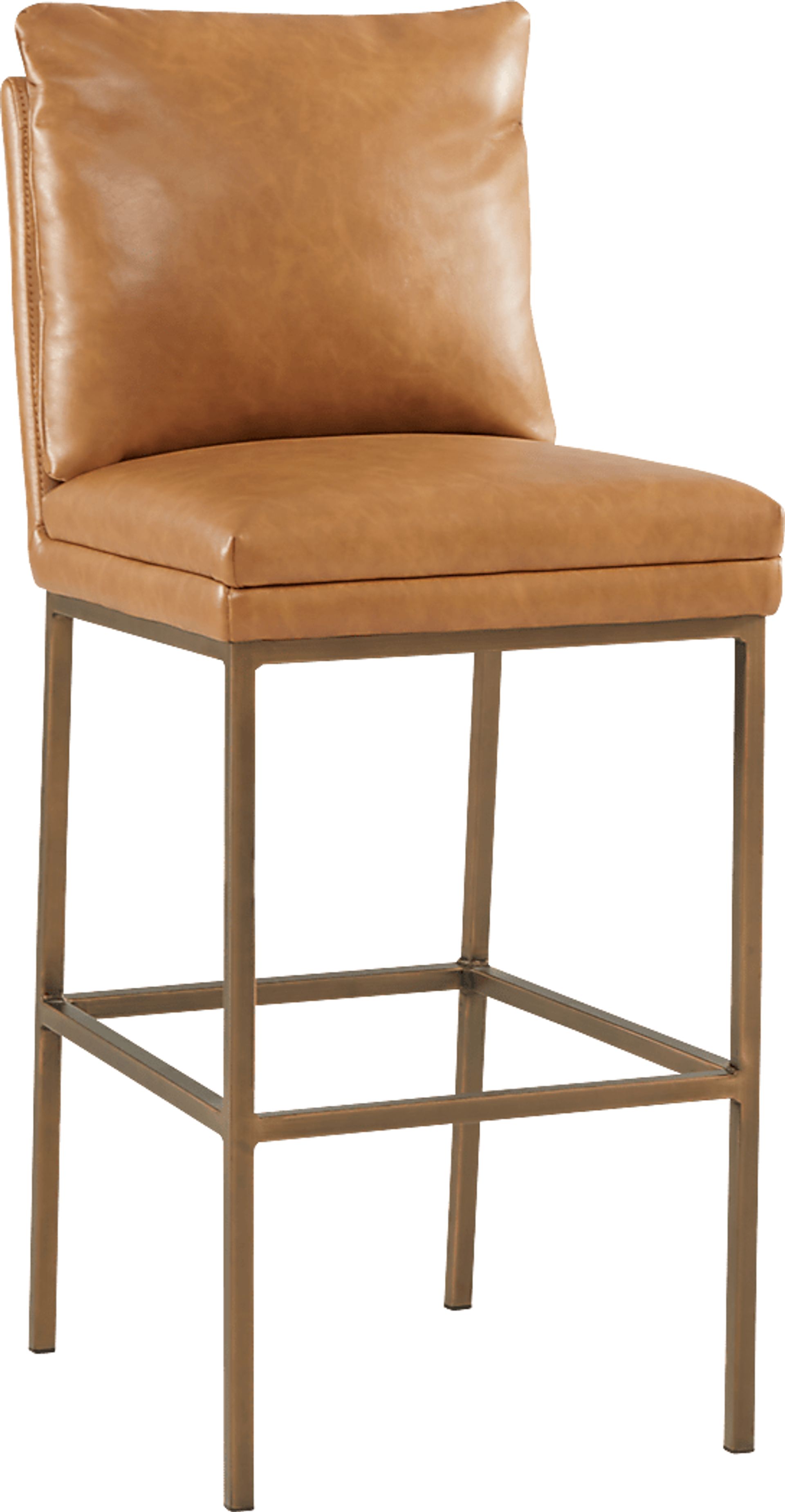 Add a touch of contemporary flair to your kitchen or dining area with the Abbeyhill barstool. Crafted in a brass finish, the sturdy base provides support while the upholstered seat and back cushions offer excellent comfort. The cushions, made to look like leather, come in a stylish camel color.