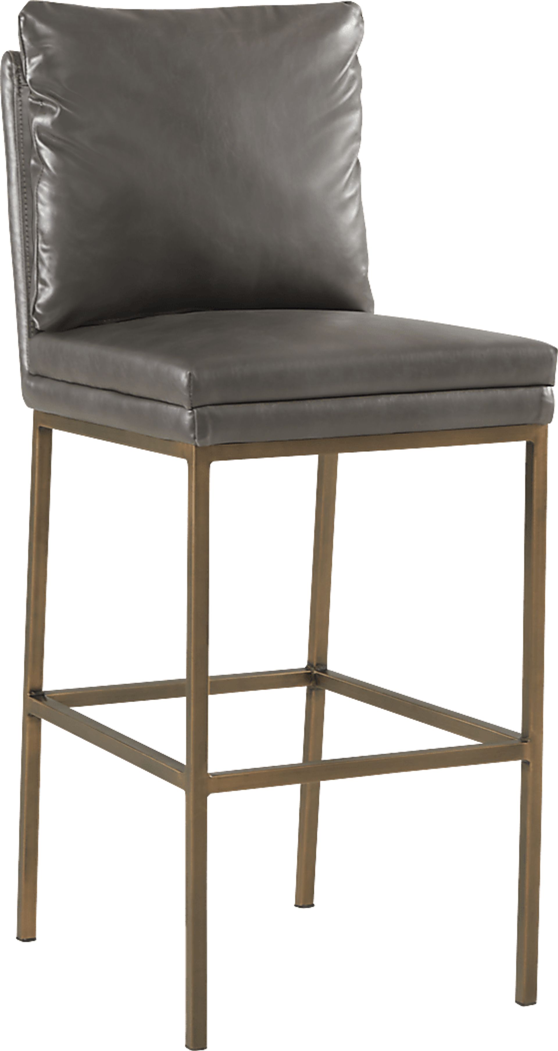 Add a touch of contemporary flair to your kitchen or dining area with the Abbeyhill barstool. Crafted in a brass finish, the sturdy base provides support while the upholstered seat and back cushions offer excellent comfort. The cushions, made to look like leather, come in a versatile gray color.