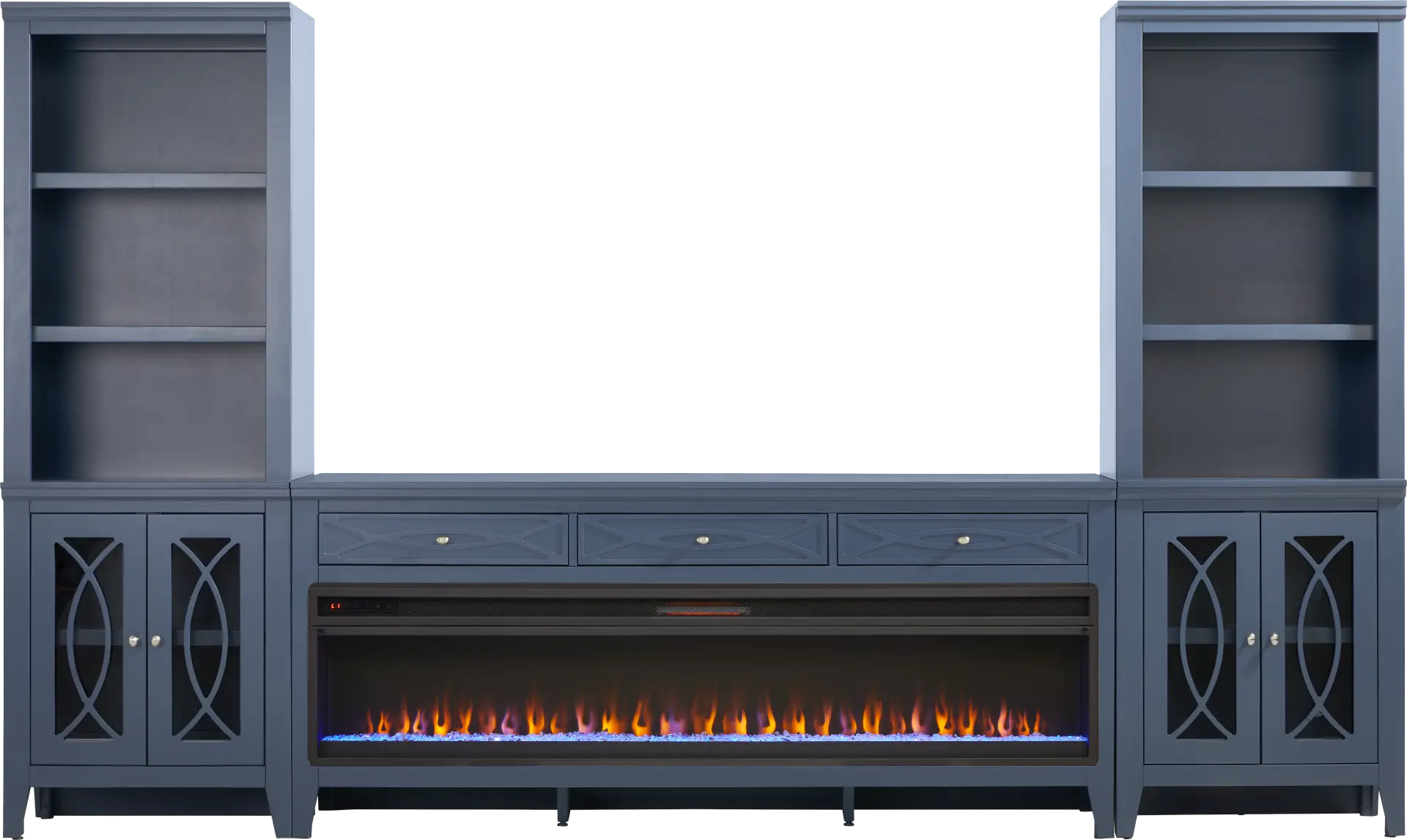 Abbie II Blue 3 Pc Wall Unit With 77 In. Console And Electric Fireplace