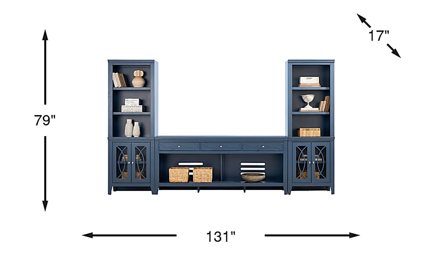This is a grand-scale furniture piece with a total width of 131 inches (nearly 11 feet). To ensure the unit anchors your room without overwhelming the layout, we recommend measuring your designated wall to confirm you have at least 11 to 12 feet of uninterrupted space. For a professional, built-in look, ensure there is adequate clearance from adjacent windows or doorways.