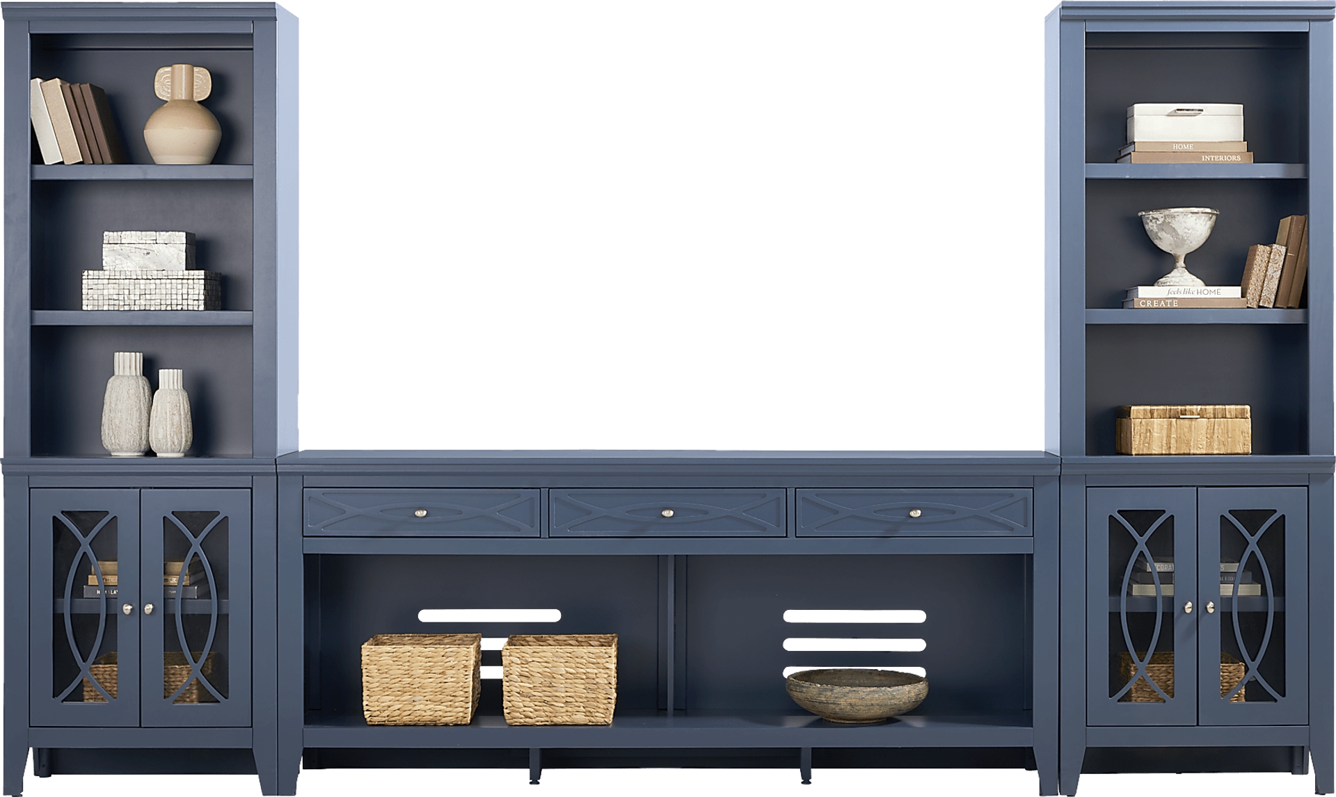 Abbie II Blue 3 Pc Wall Unit With 77 In. Console