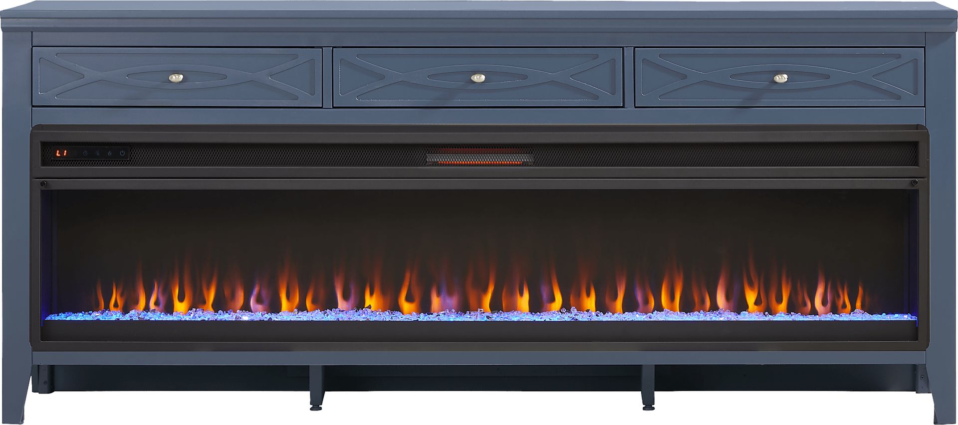 Abbie II Blue 77 In. Console With Electric Fireplace