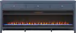 Bring sleek style and smart storage to your living room with the Abbie II console. Featuring a gorgeous blue finish, this console includes three spacious drawers along the top for essentials. At its center, an energy-saving LED firebox adds both warmth and ambiance, complete with remote-controlled heat and ambient lighting with four color-changing options to create a cozy atmosphere. Brushed silver hardware provides the final touch of contemporary elegance, making this console as functional as it is stylish.