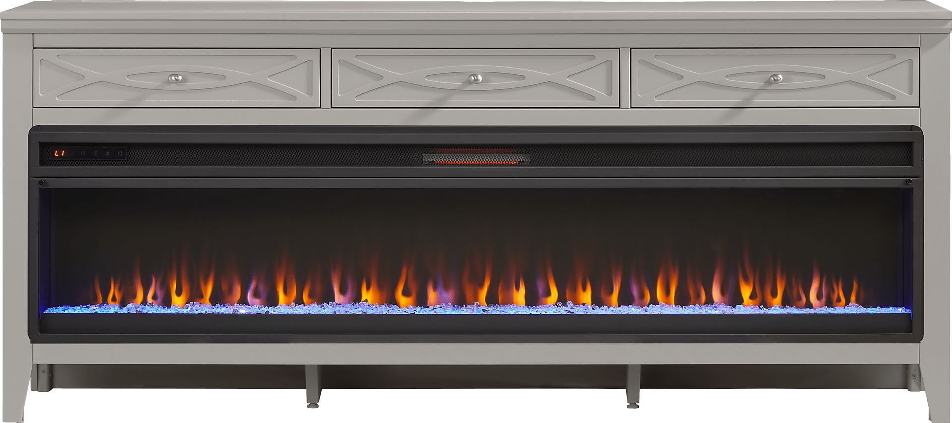 Abbie II Gray 77 In. Console With Electric Fireplace