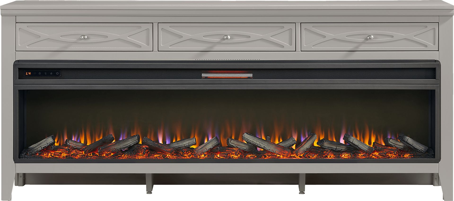 Abbie II Gray 77 In. Console With Electric Log Fireplace