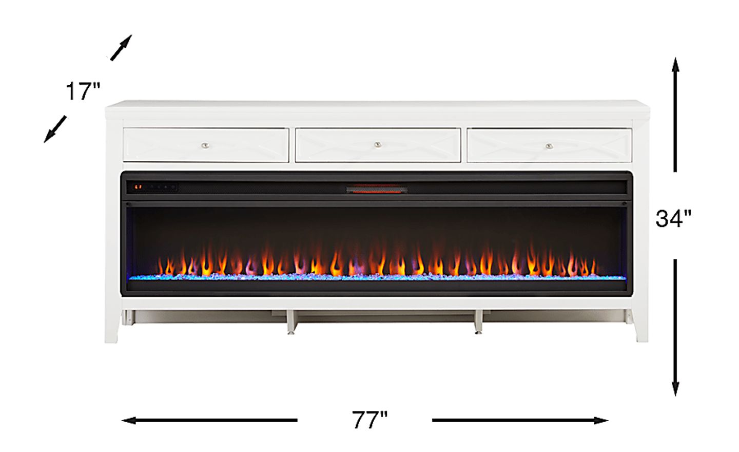 While it offers an impressive 77-inch presence, this console features a slim 17-inch depth. This narrow profile makes it an excellent choice for urban apartments or condos where floor space is limited, providing high-end style and functional warmth without obstructing walkways.