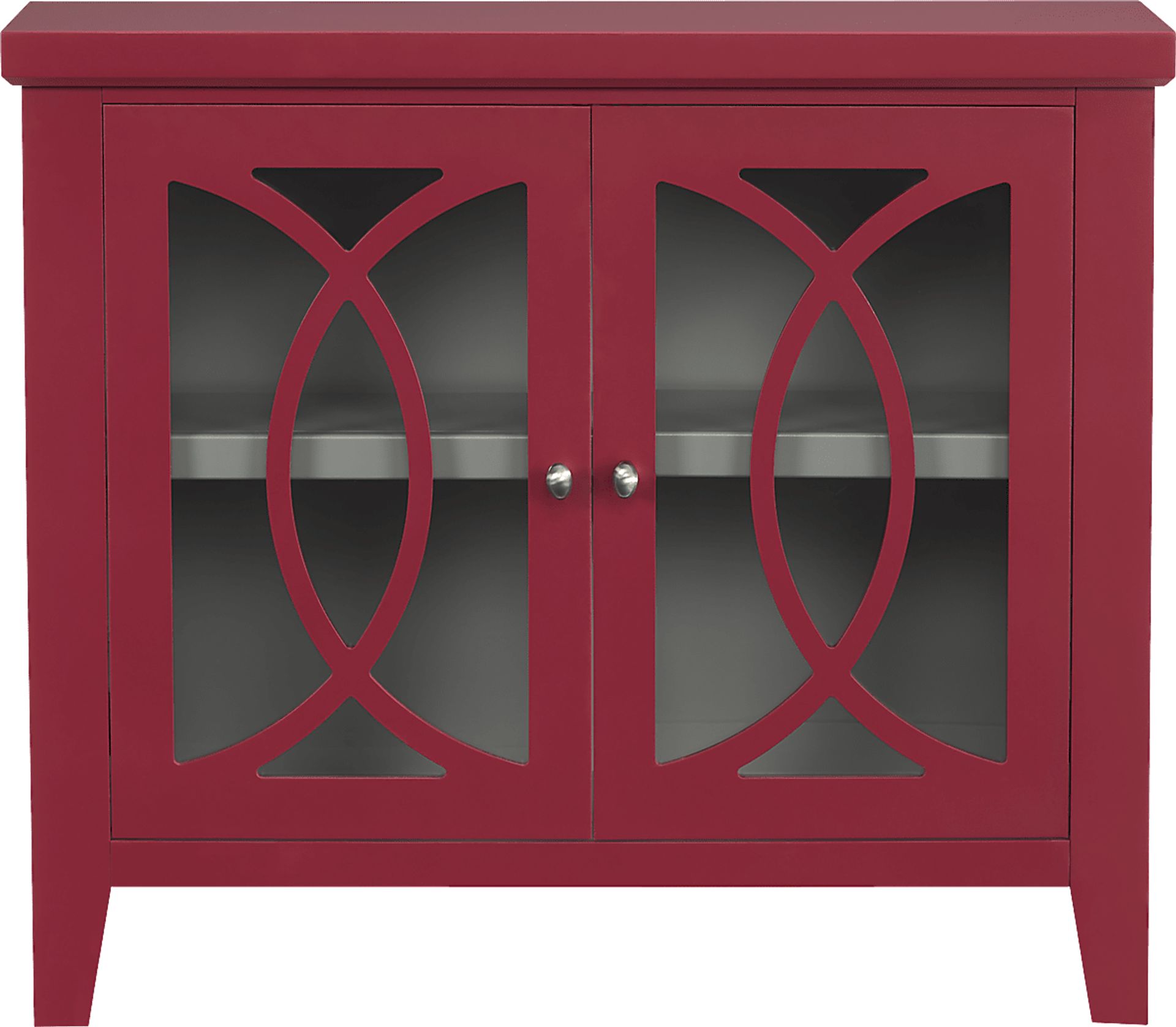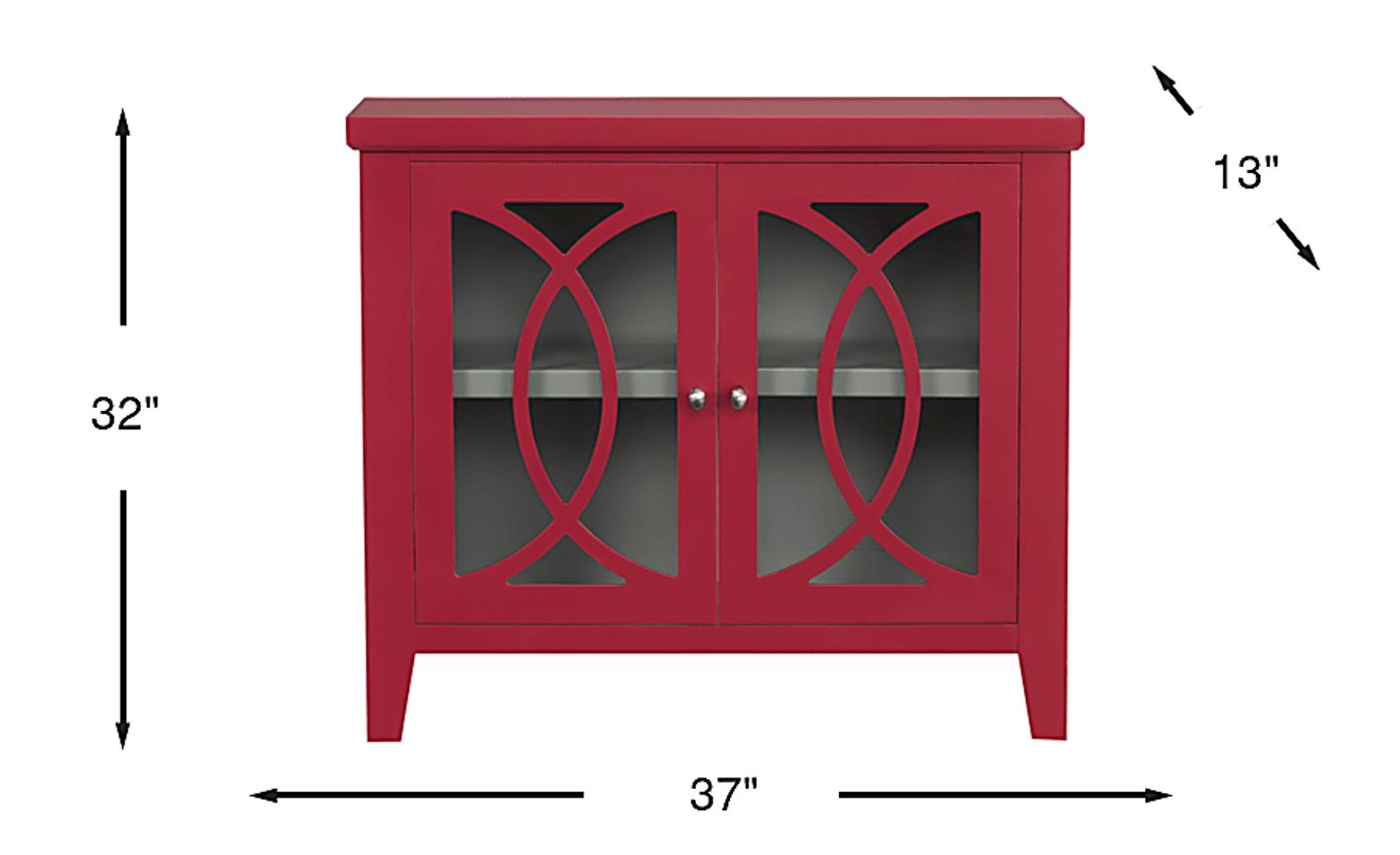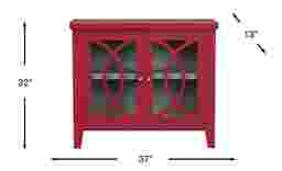 Expand your storage options in traditional style with the Abbie cabinet. Crafted with maple veneers in a beautiful red finish, two glass doors with detailing add a subtle flair to this piece. This cabinet has a shelf to keep books, media or keepsakes tidy and organized.