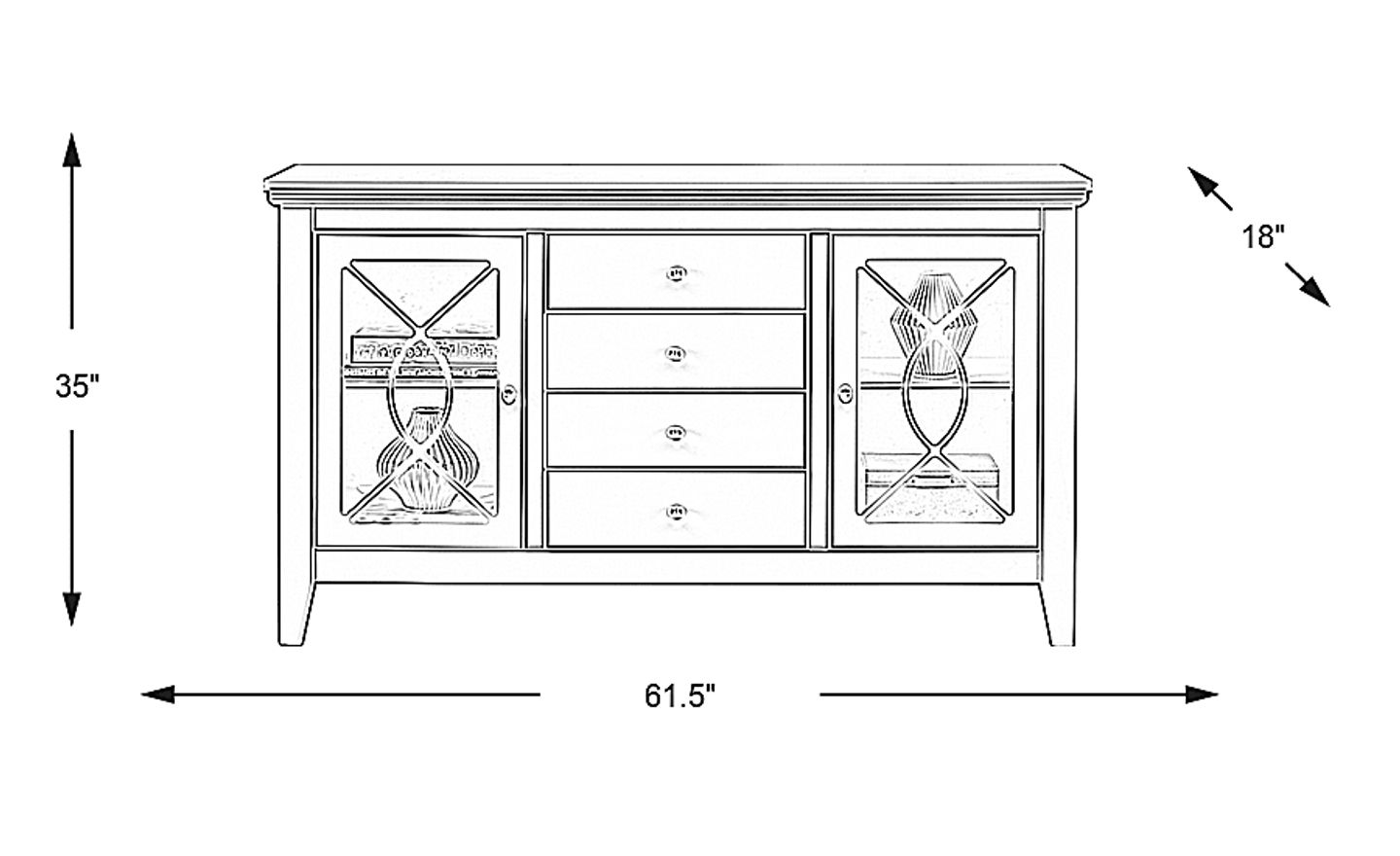 Providing stylish traditional looks with plenty of available storage, the Abbie console is a great addition to your living space. Featuring four drawers and two glass door cabinets, each with a shelf, a place to keep all of your display items and TV accessories is always at hand. Brushed silver finished hardware adds an attractive edge to the maple veneer crafted console's silver finish.