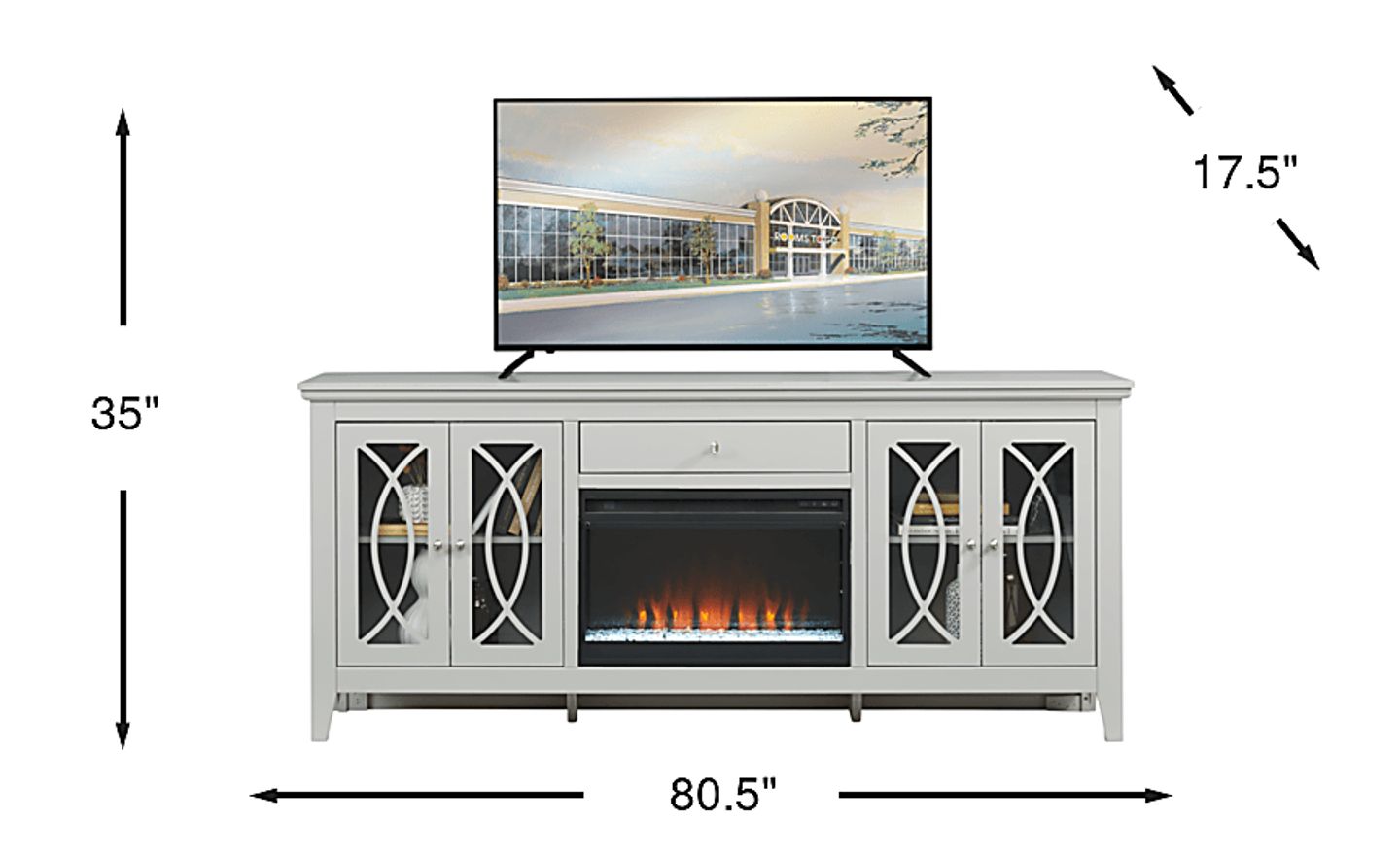 Abbie Silver 80 In. Console With Electric Fireplace