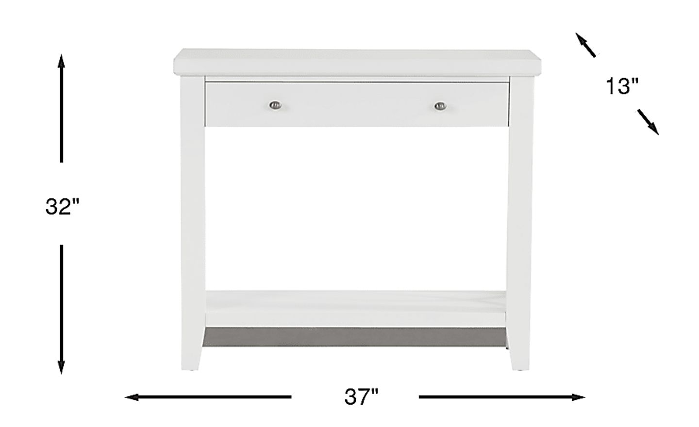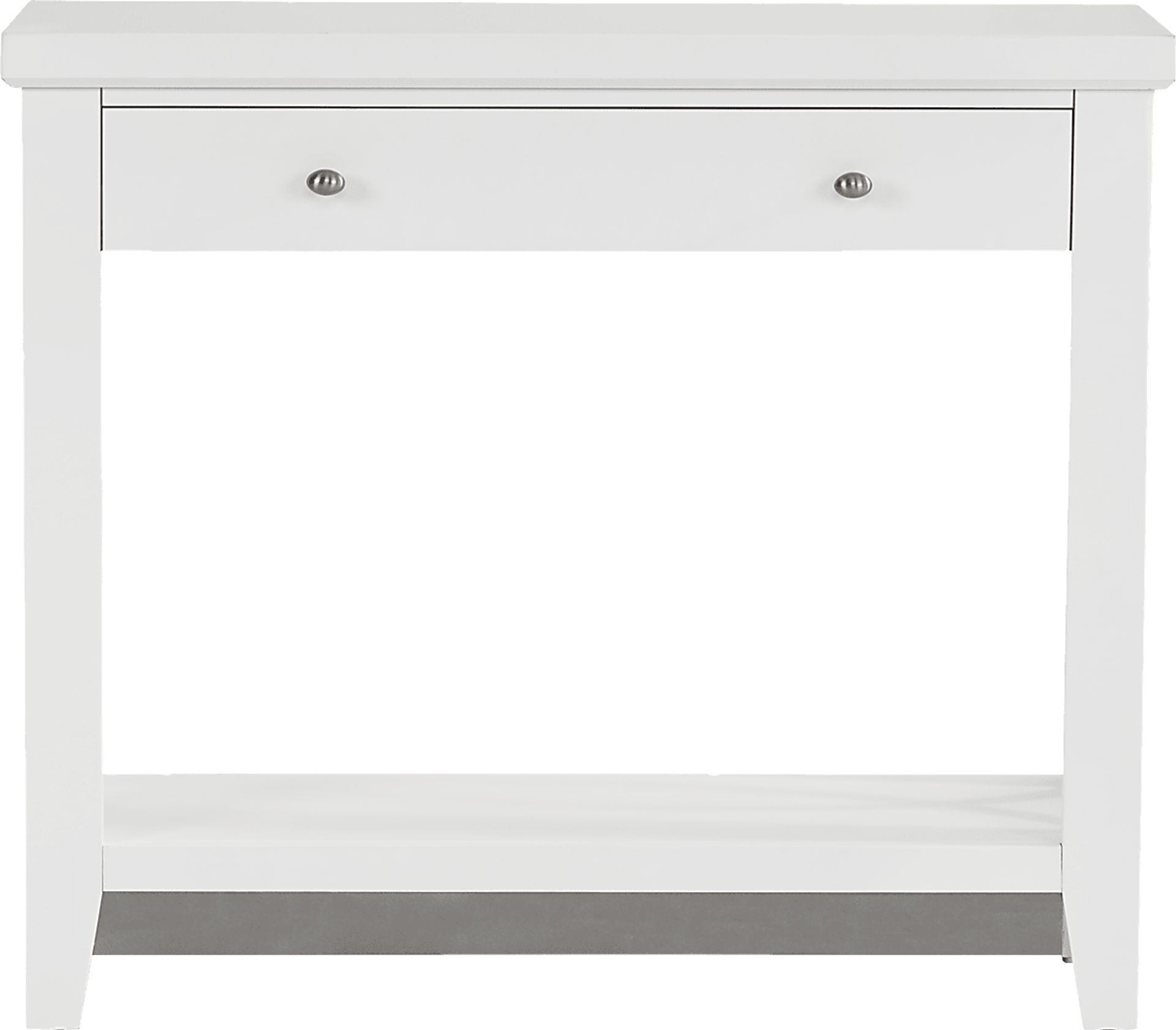 Expand your storage and display options in traditional style with the Abbie 1-drawer table. Crafted with maple veneers in a beautiful white finish, a drawer with two metal knobs adds convenient storage with a touch of flair. A shelf below creates additional space for plants, decor, and more.