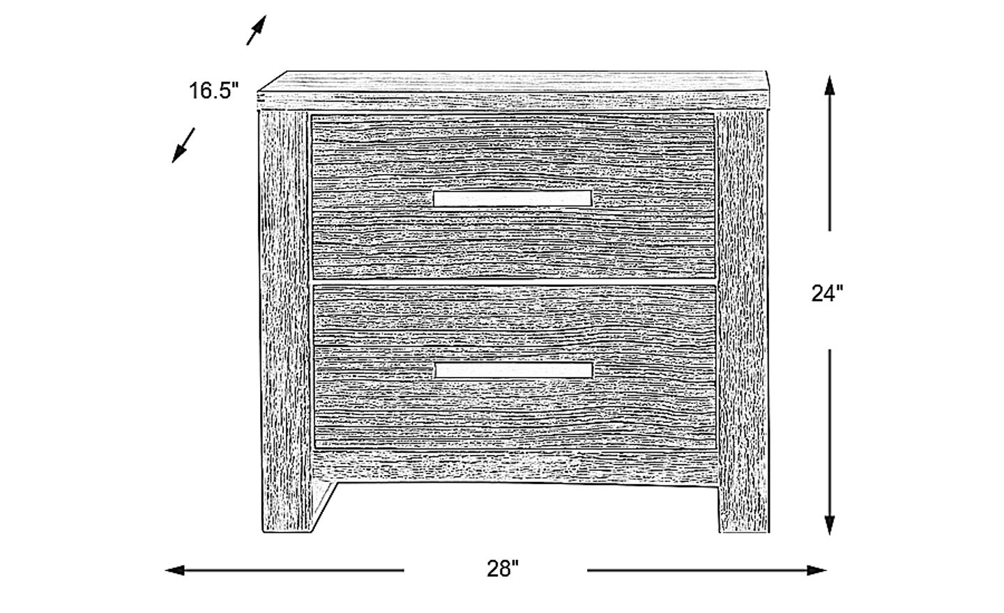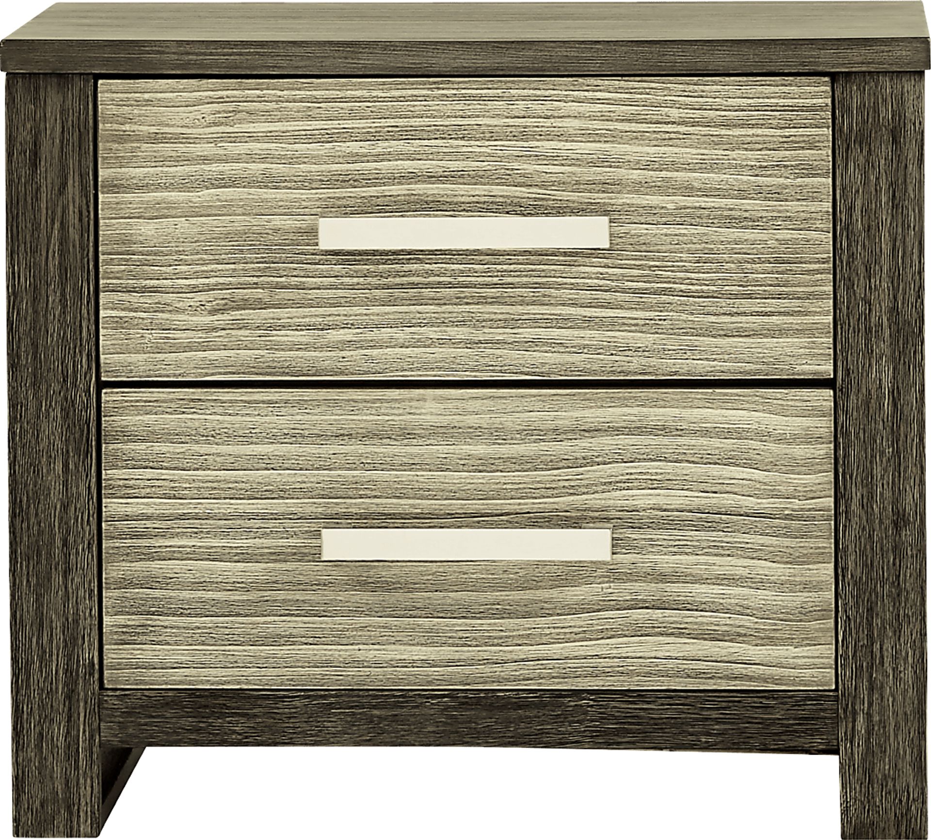 Perfect for bedside storage, the Abbott nightstand combines contemporary styling with the two tone beauty of pine veneers in a chic gray finish. Two roomy drawers, with wire brushed fronts, provide ample space for evening essentials and are complemented by long metal pulls. The top drawer is lined with felt to accommodate delicate items. Each drawer is quality made with strong French and English dovetail joints.