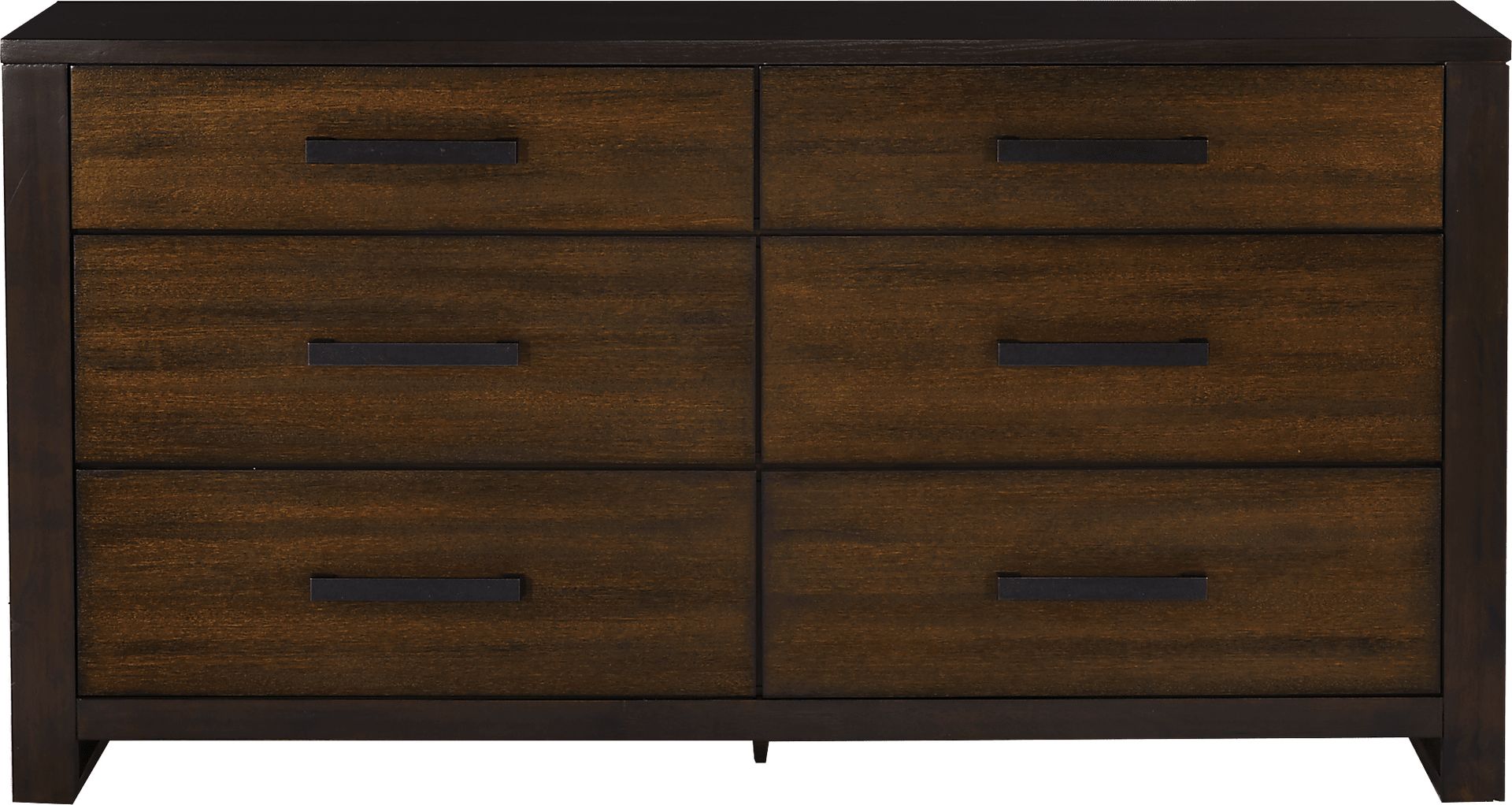 With contemporary style and plenty of storage the Abbott dresser will be a wonderful addition to your room. The top two drawers are felt lined to buffer delicate items like jewelry and small accessories. Below youll find four additional drawers made with sturdy French and English dovetail construction. Sleek, elongated metal hardware adds a refined touch. The dresser, made with wood solids, has a two tone look created by wire brushed drawer fronts along with cherry and sapele veneers in a rich hazelnut finish.