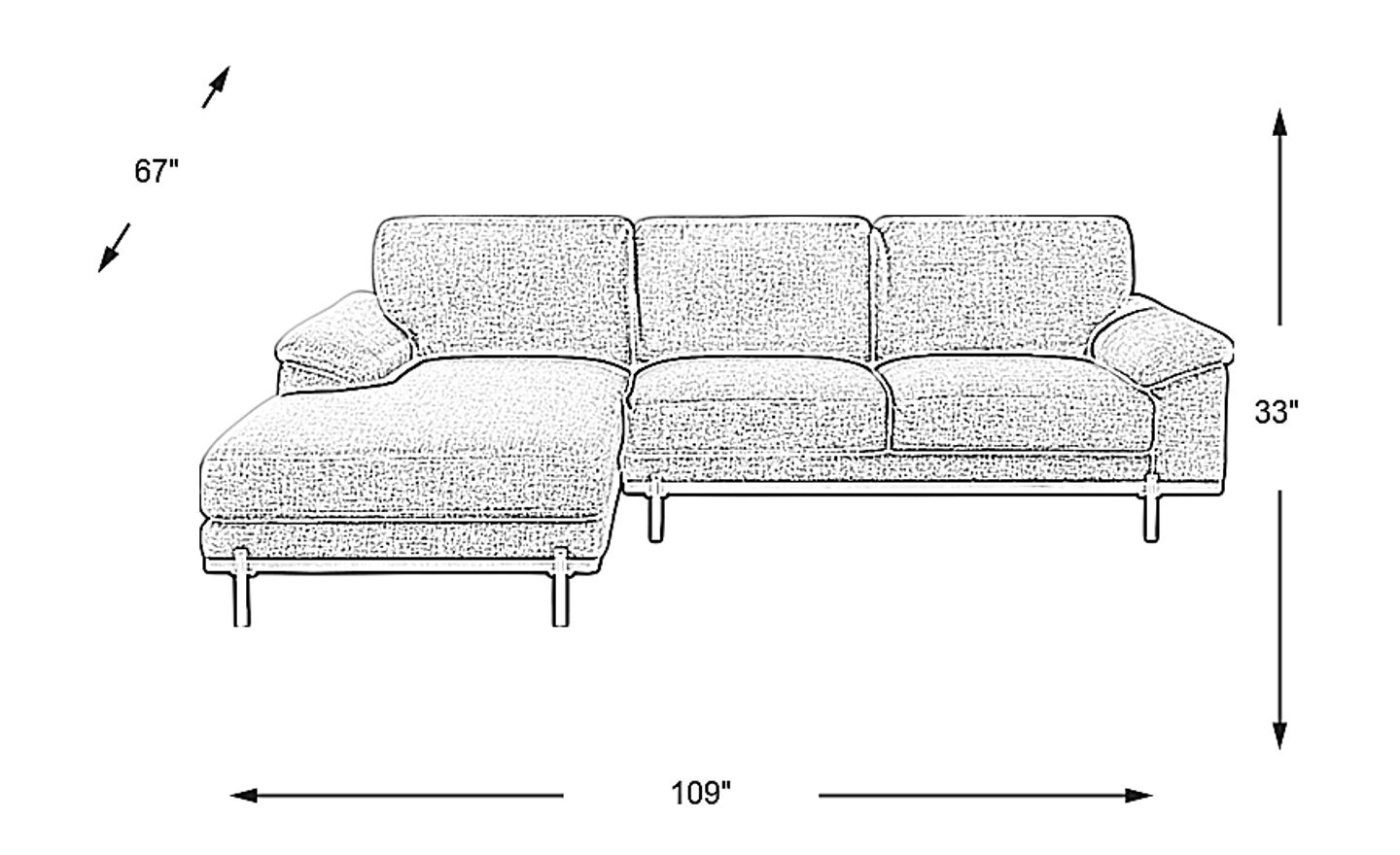Spacious seating and modern style effortlessly come together with the Abbottsville sectional. Upholstered in durable woven fabric, this piece comes in gray. Perfect for stretching out after a long day, this sectional is designed for long-lasting relaxation. Supremely soft pillowtop arms and sinuous wire seating support add premium comfort for all to enjoy, while tall legs in a black finish complete the look. 100% Polyester