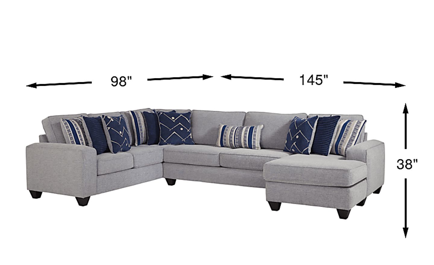 145"w"w x 98"d"d x 38"h"h