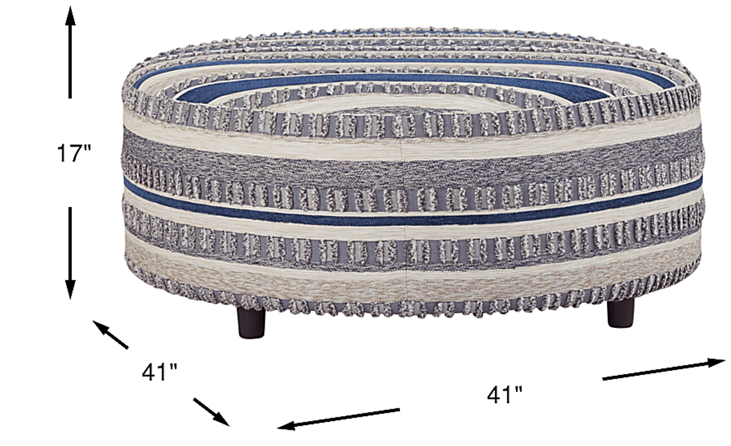Whether used as a table, extra seat or footrest, the Aberlin Court cocktail ottoman adds character to any contemporary space. Woven with a multi-colored palette, the blue tones complement the matching sectional perfectly. Its circular construction allows for easy movability and function, while pops of textured fabric provide decorative dimension. Upholstery: 100% Polyester