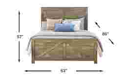 With a height of 57 inches, the panel headboard provides a substantial and supportive backrest for those who enjoy sitting up to read or watch television. To create a balanced look and optimal lighting, our experts recommend choosing bedside lamps that sit just below or level with the top of the headboard to avoid glare and highlight the rustic woodsy brown finish.