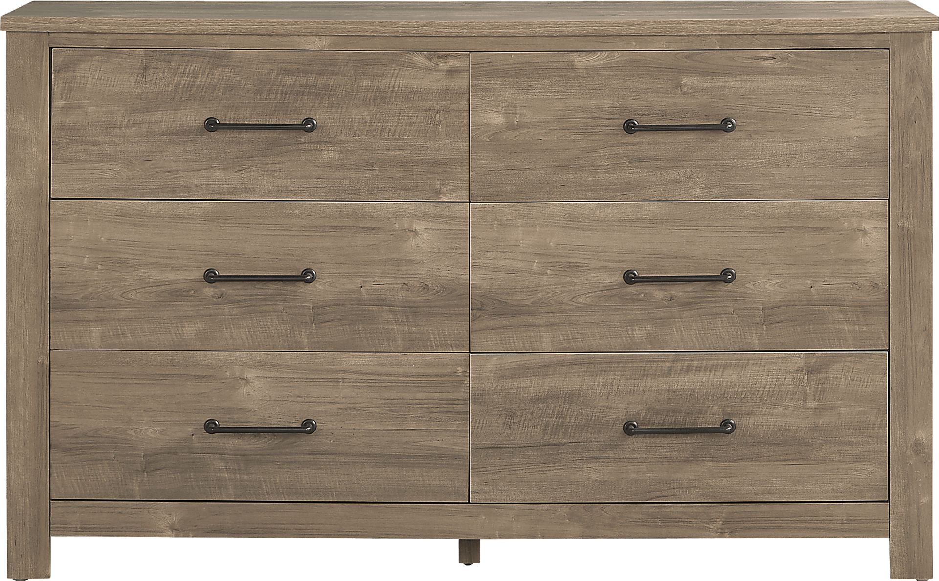 Let the irresistible charm and soothing nature of the Abilene collection put your worries to bed. Featuring a pared back look, this piece's rustic style has French industrial design influences with flourishes of quaint country living. Finished in a woodsy brown hue, the dresser has six drawers with undermounted metal glides that make opening and closing the cases a breeze. Metal hardware finished in black and waterfall style legs punch up the chic appearance for a perfect final touch.