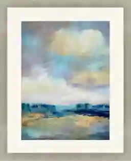 This artwork is professionally matted in white and set within a specialized molding, which provides a more "finished" and gallery-ready appearance compared to a frameless canvas. The white matting serves as a visual buffer, drawing the eye into the blue landscape and giving the abstract colors more room to "breathe." This formal presentation is particularly well-suited for high-traffic areas like dining rooms or hallways where you want a polished, intentional look.