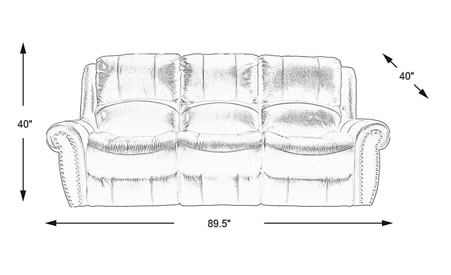 Classic styling and cozy comfort combine in the Abruzzo power reclining sofa, creating a stylish living space that invites guests to sit back and stay awhile. Upholstered in luxurious whiskey brown leather covering wherever the body touches, this premium sofa features dual power reclining chaise style footrests offering full leg support at the touch of a button. Design details such as padded roll arms, bucket style seating, antique brass nailhead accents and contrasting stitching make this sofa look as good as it feels. Top Grain Leather Where the Body Touches and Vinyl Sides and Backs.