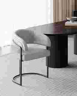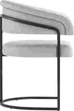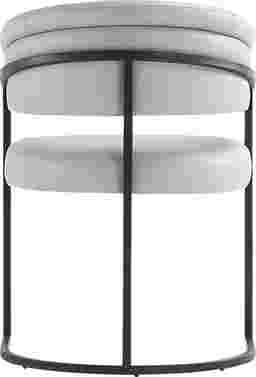 Introducing the Absalom light gray armchair, a premier piece that seamlessly combines style and comfort. Each piece is upholstered in luxurious leatherette with high-density foam padding, ensuring a plush seating experience. The geometric modern base, crafted from durable metal, offers a striking visual appeal while providing exceptional stability. Finished with a sleek matte black frame, the Absalom embodies contemporary elegance and enduring quality, making it the perfect choice for elevating your dining and bar areas.