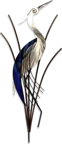Inspired by the beautiful inhabitants of coastal regions and wetlands in North America, the Abstract Heron wall art piece is an excellent choice for your home. Crafted of stainless steel, this artwork boasts shades of blue and white for a striking appearance. Its durable construction makes it perfect for both covered outdoor spaces and indoor settings. No direct exposure to water or sunlight. For best results apply a premium wax, such as car or boat wax to the product. Apply prior to hanging outdoors and reapply every 6-12 months. Do not use waxes that contain cleaners (such as boat "cleaner/wax") as these will damage the surface.