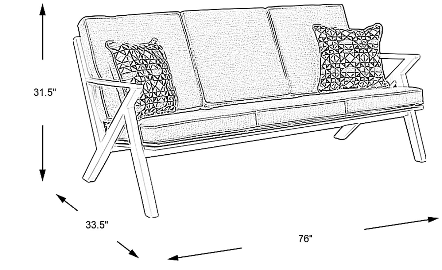 Modern angles and an open slat back make the Acadia sofa a fresh choice for your patio or pool area.Crafted from rust-resistant aluminum in a crisp white finish, hydra blue cushions create a sleek coastal look. Six cushions are covered in an all-weather solution dyed performance fabric, making it durable enough for long-lasting outdoor use. Two accent pillows add a fun geometric touch. High performance acrylic fabric.