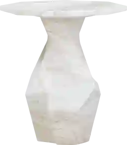 This table features a striking silhouette designed to mimic the look of chiseled marble while offering the durability required for both indoor and outdoor use. The finish is formulated to maintain its crisp white color across various environments. Based on our furniture care expertise, we recommend regular dusting with a soft cloth and cleaning with mild soap and water to keep the modern surface looking pristine.