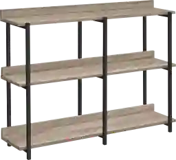 Proudly display prized possessions on this rectangular Acelia console table with 3-tier shelving. Underneath the long, narrow tabletop are shelves arranged on 2 levels. Distribute books, plants, and decorative items among the tabletop and shelves, which are in a dark taupe laminate finish. The sturdy metal frame in a contrasting black finish features clean lines and right angles for a modern look. With its narrow profile and generous display space, this versatileaccent tablewith storage is ideal for a hallway, an entryway, or behind a sofa in a living room. Customer assembly required.