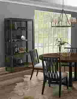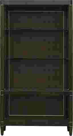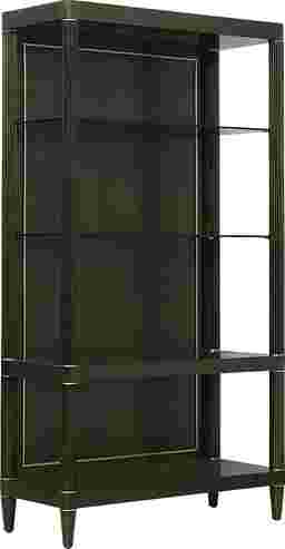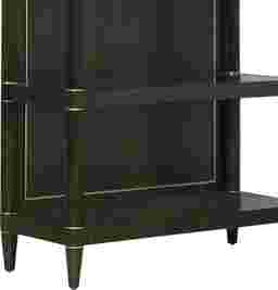 Showcase your favorite decor with timeless elegance in the Acentube brown bookcase. Featuring a rich brown finish over premium eucalyptus veneers, this bookcase is designed with two open glass shelves, one wood-framed glass shelf, and a solid wooden bottom shelf, offering versatile storage and display options. The design is enhanced by round reeded posts that bring classical texture and structure, while metal collar accents in a soft brass add a luxurious, decorative touch. Perfect for living rooms, dining spaces, or home offices, this bookcase offers sophistication and organization to any interior. Customer assembly is required.