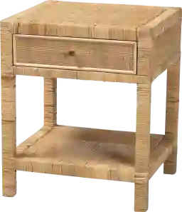 Acquaint yourself with bohemian tranquility at your bedside with the soothing yet efficient design of the Ackerly brown nightstand. This boho piece is comprised of a solid wood frame wrapped in natural rattan. The drawer offers convenient storage for all your bedside essentials, while the open shelf accommodates larger items. The Ackerly will arrive fully assembled and features a metal drawer knob for an added touch of glamour. Efficient with an exhibit of exotic beauty, the Ackerly is sure to transform any bedroom environment. Due to the nature of the natural materials used in this product, it may have variations in areas such as, but not limited to, color, pattern, grain and texture. The hair-like strands of rattan/rattan-fiber are common due to the nature of the material.