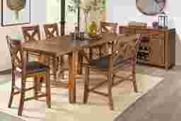 Introduce a new look to your dining space with the beautiful Acorn Cottage collection. Designed in a stunning transitional style, this set becomes the focal point of every mealtime with rich acacia veneers that add depth and warmth with brown finish. The coordinating stools feature an elegant x-back design, adding just the right touch of timeless charm, while the matching counter-height bench offers versatility and extra seating.