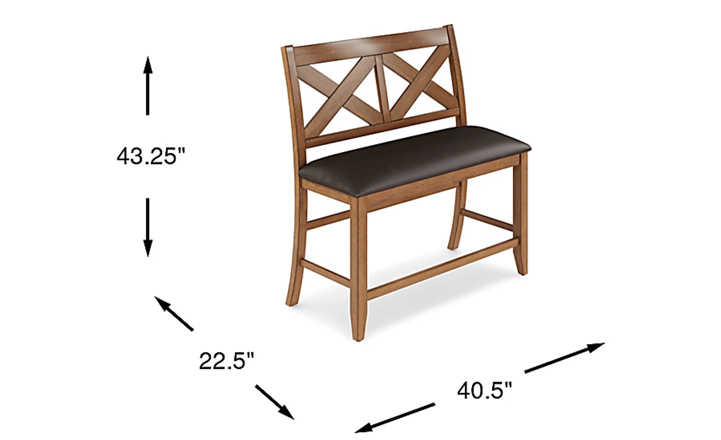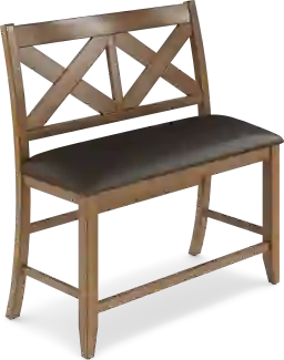 Perfect for expanding your seating to fit everyone at the table, the Acorn Cottage counter height bench is a great choice for families and party hosts. The transitional style is highlighted by an attractive X back design and a rich brown finish. Sturdily constructed using acacia veneers with Ultrahyde upholstery on the seat, this bench will help ensure guests always have a seat at your table.