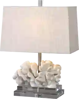 Ideally for a nightstand or table, the Ada Shores lamp adds a beach inspired vibe to any space, perfect for a coastal styled home. This lamp features a taupe-ivory coral sculpture accented with thick crystal details. The slightly tapered rectangle hardback shade is a beige linen fabric with natural slubbing. Partial assembly may be required.