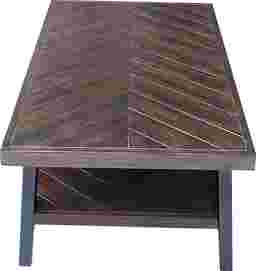 Legend has it that King Arthur's sword Excalibur was forged on a mythical islanda place where grapevines were said to grow amongst wild apple trees. This meeting of wood and metal was the inspiration behind our bold new Adaire cocktail table. Each piece is crafted with slats of acacia wood in angled patterns, creating a rustic look offset by modern metal legs and sleek handles. Customer assembly is required. Customer assembly is required.