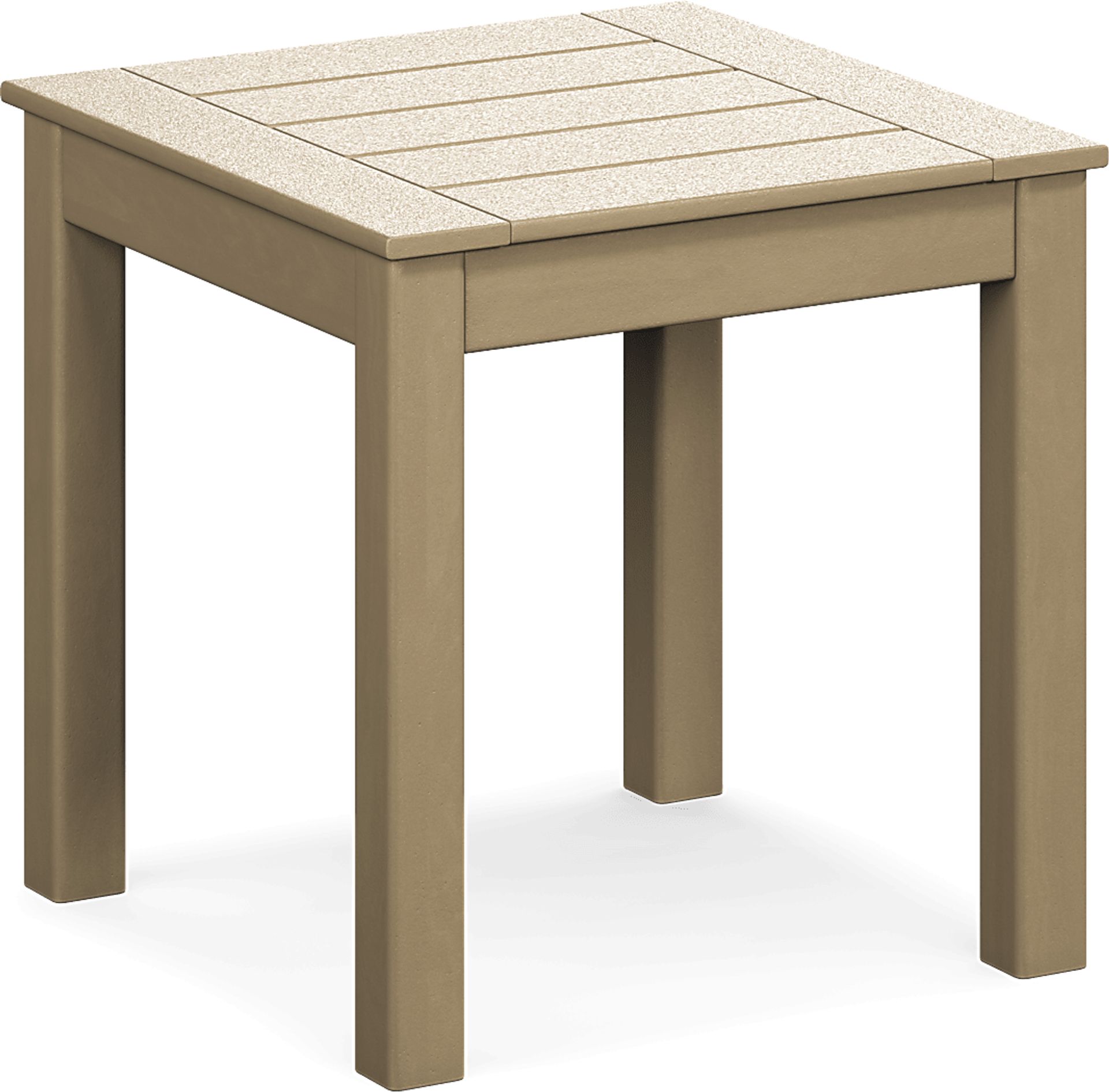 Yes, this end table is constructed from high-quality synthetic materials specifically engineered for UV resistance. This ensures the rich brown finish remains vibrant even with prolonged exposure to the sun, making it a durable and reliable choice for uncovered patios, sun-drenched decks, or poolside lounging.