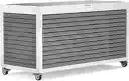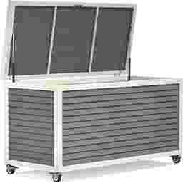 Organize your outdoor space in style with the Addy storage box. This handy accent offers a convenient place to tuck away seat cushions and other outdoor necessities under its lift-top lid. The gray panels of this piece feature a layered board design framed in white and made with a highly durable UV-resistant outdoor material. Completing this versatile chest is a set of caster wheels with brakes for easy movement.