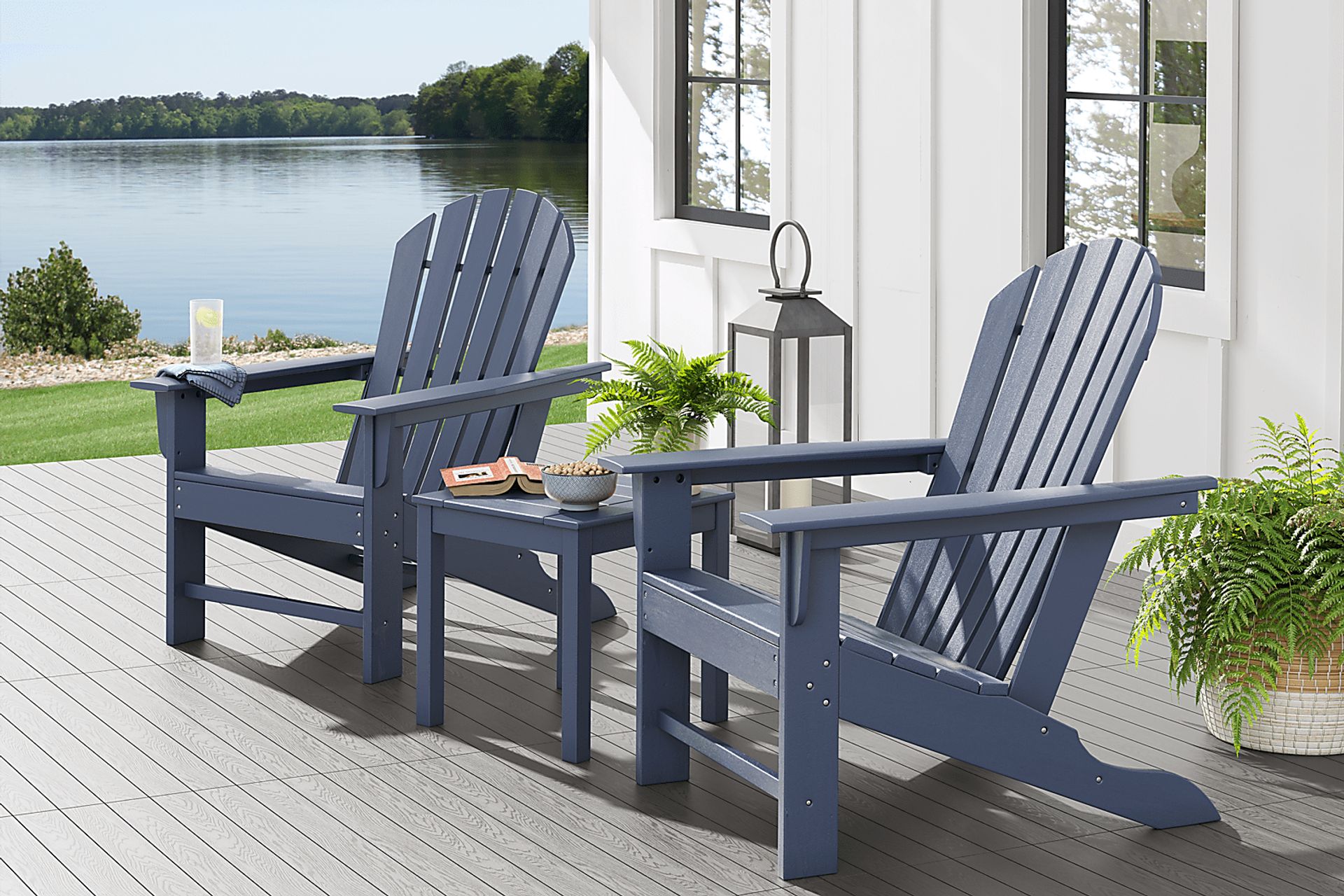 This chair set is constructed from High-Density Polyethylene (HDPE), a premium synthetic material engineered for maximum outdoor longevity. Unlike traditional wood, which requires seasonal staining or sealing to prevent rotting and splintering, HDPE is virtually maintenance-free. It is inherently resistant to moisture, insects, and environmental stressors, ensuring that your furniture maintains its structural integrity and navy finish without the risk of warping or cracking over time.