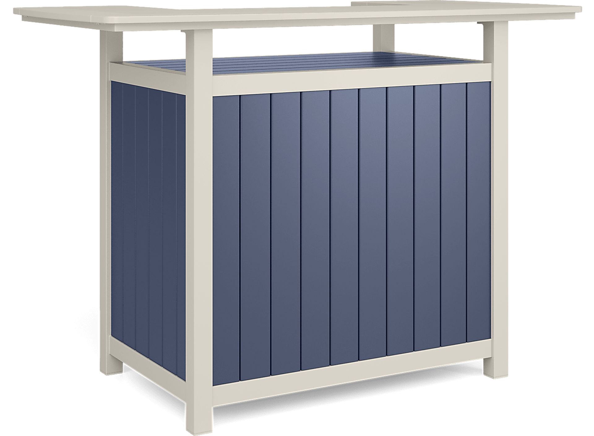 As perfect for serving up summertime libations as it is for hot cocoa in winter, the Addy bar table offers a versatile mainstay for any time of year. Crafted from strong, durable materials for low-maintenance enjoyment, this bar-height table features a vibrant navy finish for easy coordination with existing pieces on your patio. Discreet shelving underneath the bar top provides seamless storage for your bar essentials.