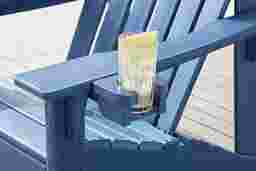 A perfect addition to the matching Adirondack chair, the versatile Addy cup holder allows you to relax while keeping your favorite drink close at hand. Made using strong, durable materials, this piece comes in a stylish navy color and can hold anything from a wine glass to your favorite tumbler or travel mug. With the included stainless steel screws, this cup holder can be installed anywhere along the chair's arms.