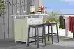 As perfect for serving up summertime libations as it is for hot cocoa in winter, the Addy bar table offers a versatile mainstay for any time of year. Crafted from strong, durable materials for low-maintenance enjoyment, this bar-height table features a vibrant white finish for easy coordination with existing pieces on your patio. Discreet shelving underneath the bar top provides seamless storage for your bar essentials.
