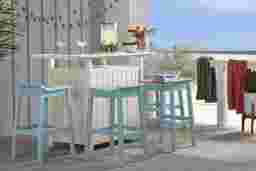 Addy White 5 Pc Outdoor Bar Dining Room with Sky Barstools