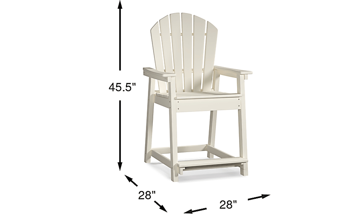 Take a typical outdoor seating experience to new heights with this Addy Adirondack balcony stool. Long legs, a spacious back and wide arms define this stool's interesting design while the super white finish makes it a versatile option for any patio. Solid construction with durable, fade-resistant materials makes it the perfect, low-maintenance mainstay for your outdoor living area.