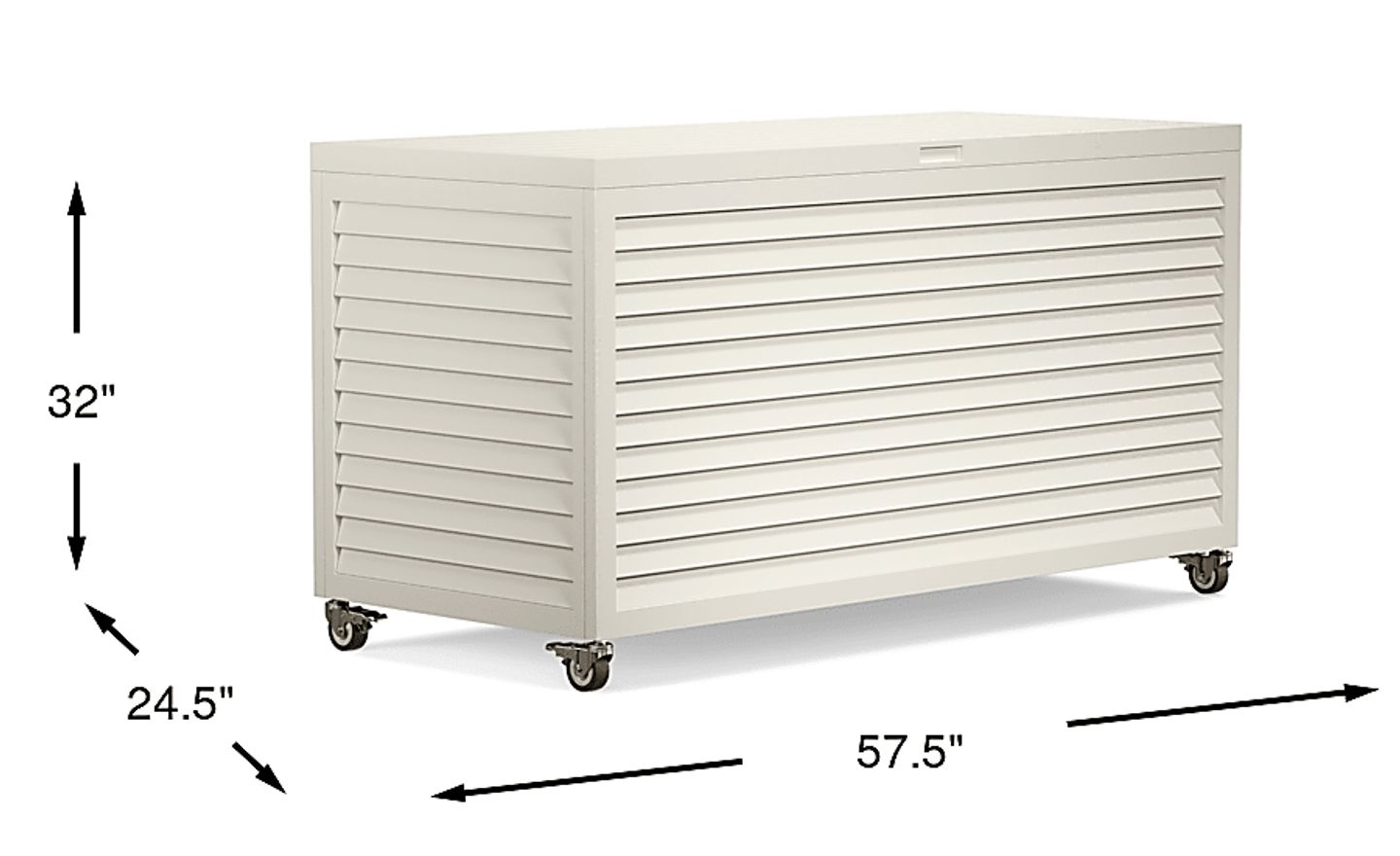 With exterior dimensions of 57.5"W x 24.5"D x 32.25"H, this rectangle storage box offers a generous capacity. Its wide profile is particularly well-suited for oversized sofa or sectional cushions that are often too long for standard deck boxes. It provides a convenient, centralized hub for organizing everything from seating textiles to pool accessories and gardening tools.