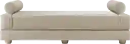 The Adelaide daybed is a modern art form for your bedroom, living room, office or den. Crafted with a pair of supportive polyurethane foam platforms, the Adelaide is a cozy chaise then doubles as a queen-size bed when unfolded. The elegant design of this daybed is elevated with beautiful lathe-turned maple feet that can be secured in a matter of seconds into a hidden wood base. The two removable elastic strapped bolsters complements the streamlined construction. Customer assembly required.