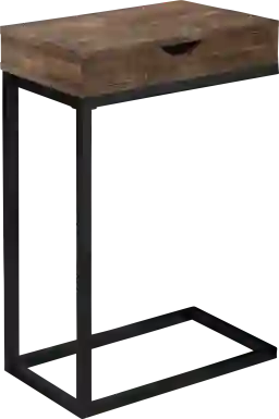 This beautiful rustic style brown reclaimed-look rectangular Adlai accent table is a great addition to any living room, family room, or home office. With sufficient surface space for snacks, drinks, or tablet as well as a convenient storage drawer that slides out on either side for remotes, coasters and other accessories, this table is perfect for movie night, snacking in front of the TV or entertaining guests during the big game. The black metal base provides sturdy support along with a fashionable touch that will suit any decor. Customer assembly is required.